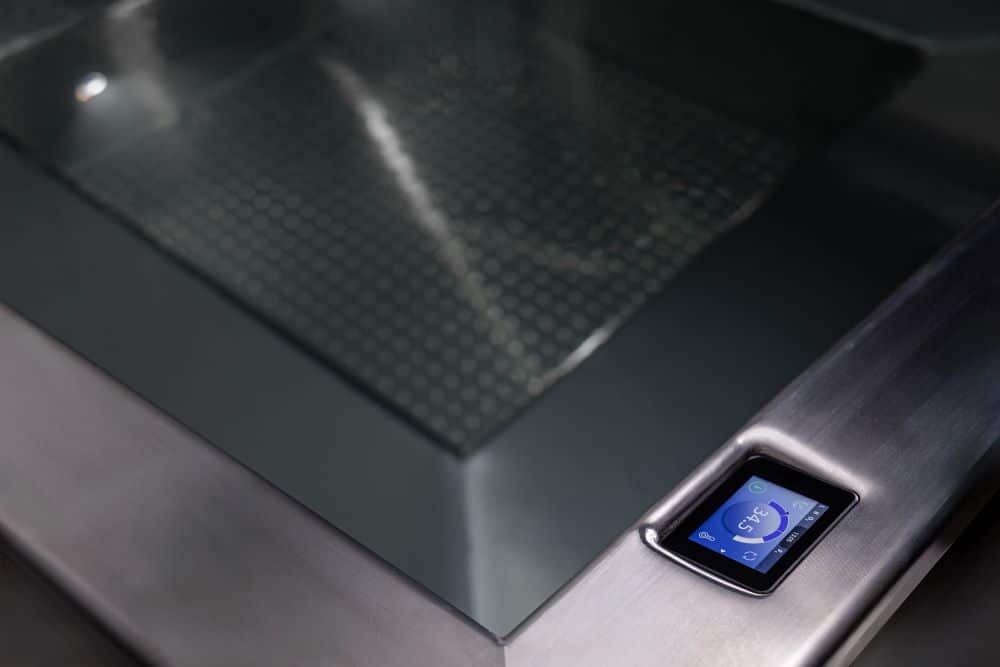 Displayen är integrerad med en precision som annars hör hemma i avancerad industridesign: en specialtillverkad, 3D-printad komponent i rostfritt stål svetsas och slipas in i badets överkant, vilket skapar en helt sömlös infästning där displayen elegant möter plåten som om den vore gjuten direkt i konstruktionen.